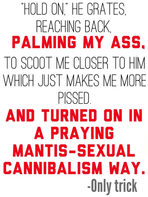 His lip twitches. Then, with what can only be described as a scene from a horror movie, he grabs my ankles and drags … he fucking drags me out of the closet. “Trick!”