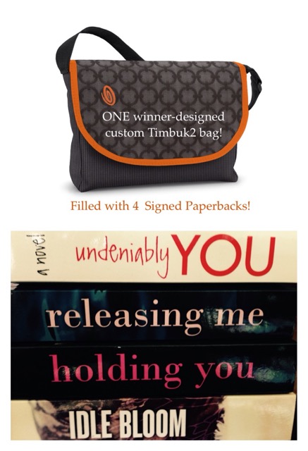 Custom design Timbuk2 bag and signed paperbacks of the Holding You Series, Undeniably You, and Idle Bloom – all to ONE winner