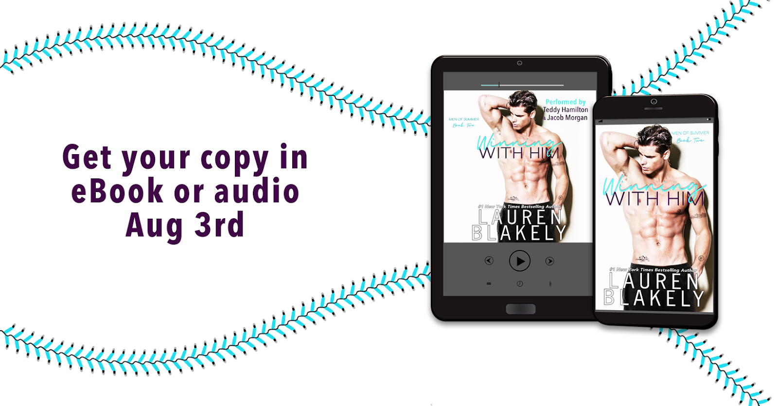 WINNING WITH HIM, the second book of the Men of Summer series from #1 New York Times Bestselling Author, Lauren Blakely, releases in ebook and audio on August 3rd! Scroll down for an exclusive excerpt!
