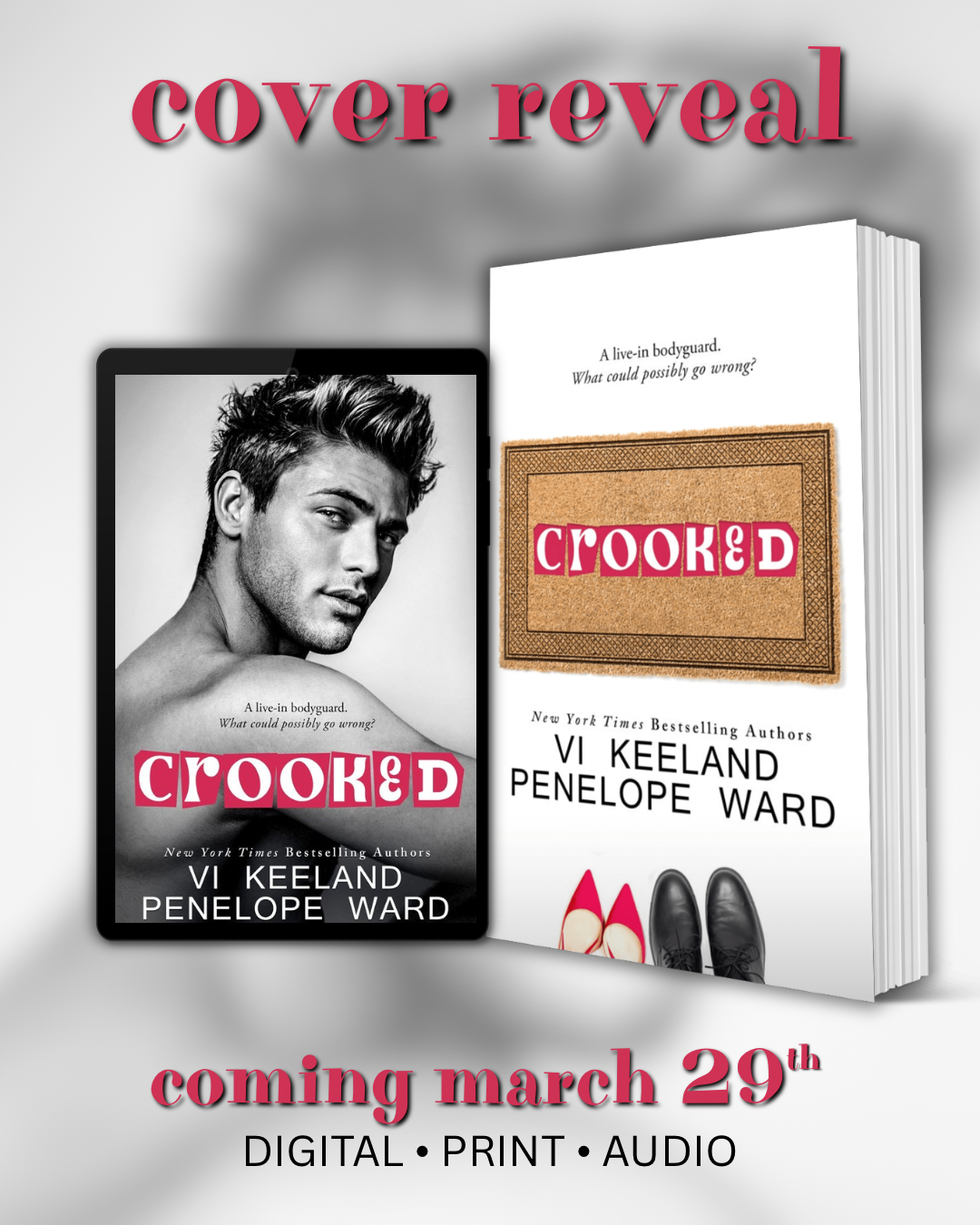 CROOKED, a new standalone enemies-to-lovers contemporary romance from New York Times Bestselling Authors, Penelope Ward and Vi Keeland, releases March 29th! Check out this cover!