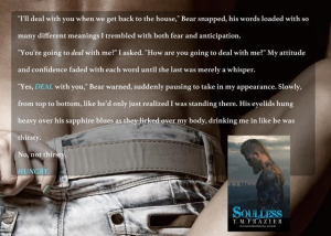 Bear & Thia’s epic is FINALLY HERE! SOULLESS IS LIVE! Amazon US: http://amzn.to/1U0xEAg Amazon UK: http://amzn.to/1NKiPfZ iBooks: http://apple.co/1XgzApZ Nook: http://bit.ly/1T4mmMK Check out our 4 smooches review HERE. PROLOGUE I was mad at the world, at the whiskey for not being strong enough, at the drugs for not lasting long enough, at the fucking whores I …