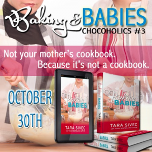 BAKING AND BABIES (Choloholics #3) by Tara Sivec Blurb: “I’m pregnant.” Molly Gilmore had a good life before she uttered those two stupid words. While preparing to graduate from culinary school and building up the courage to make a move on her hot, sugar-cookie-smelling pastry instructor Marco, she can’t wait to finally have the GREAT …