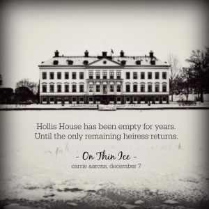 Title: On Thin Ice Author: Carrie Aarons Genre: Romantic Suspense Release Date: December 7, 2016 BLURB Nathan Rush is a small town man who has never dreamed of a bigger life. Until, that is, the only surviving heiress of America’s richest family lands on his doorstep. Nathan is the groundskeeper at Hollis House, the …